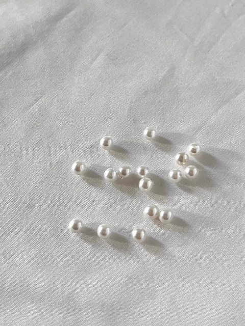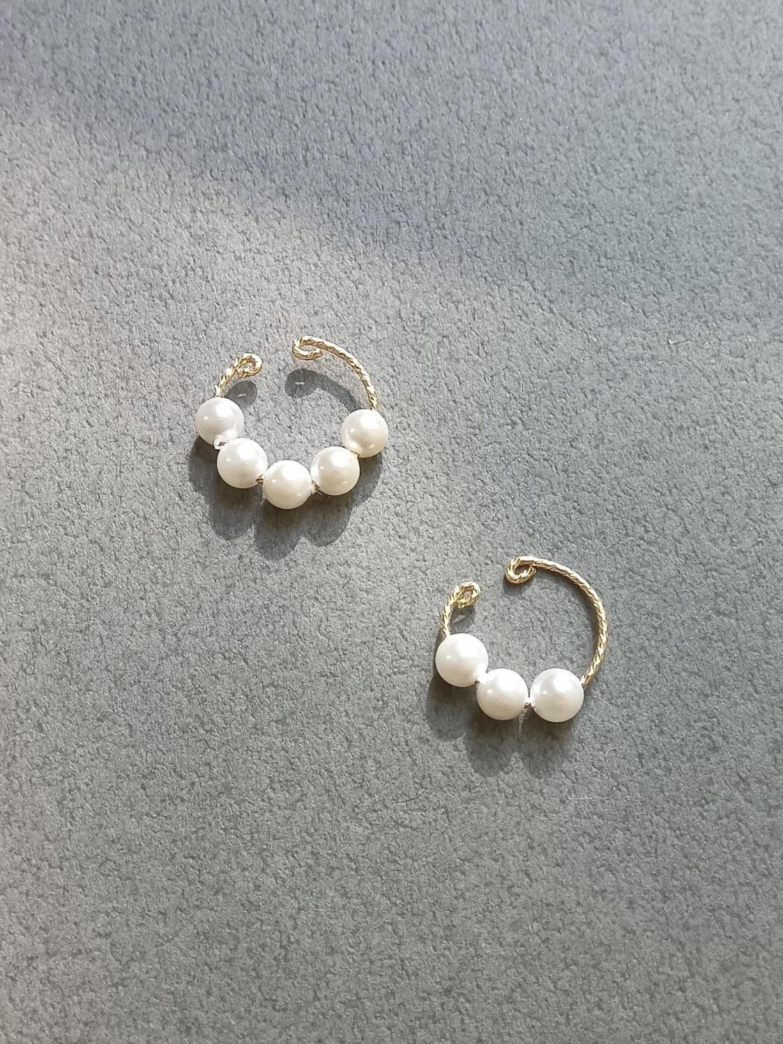 4mmの貝パールを並べたミニマルなイヤーカフは、約1.2〜1.3cmのコンパクトなサイズ感で、