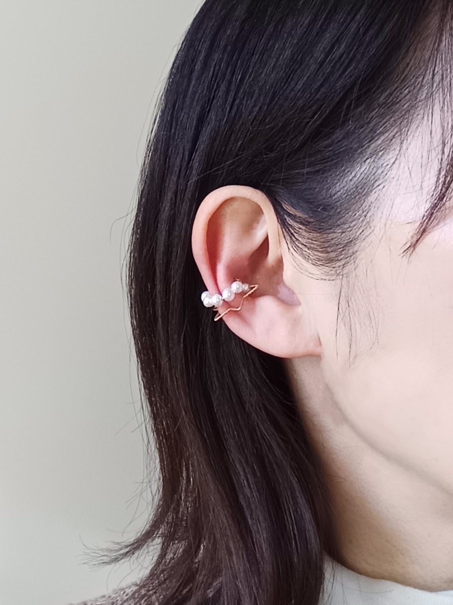 イヤカフならではの独特の形状とデザインは、耳元を華やかにしてくれるだけでなく、周りの視線も集めることができるでしょう。